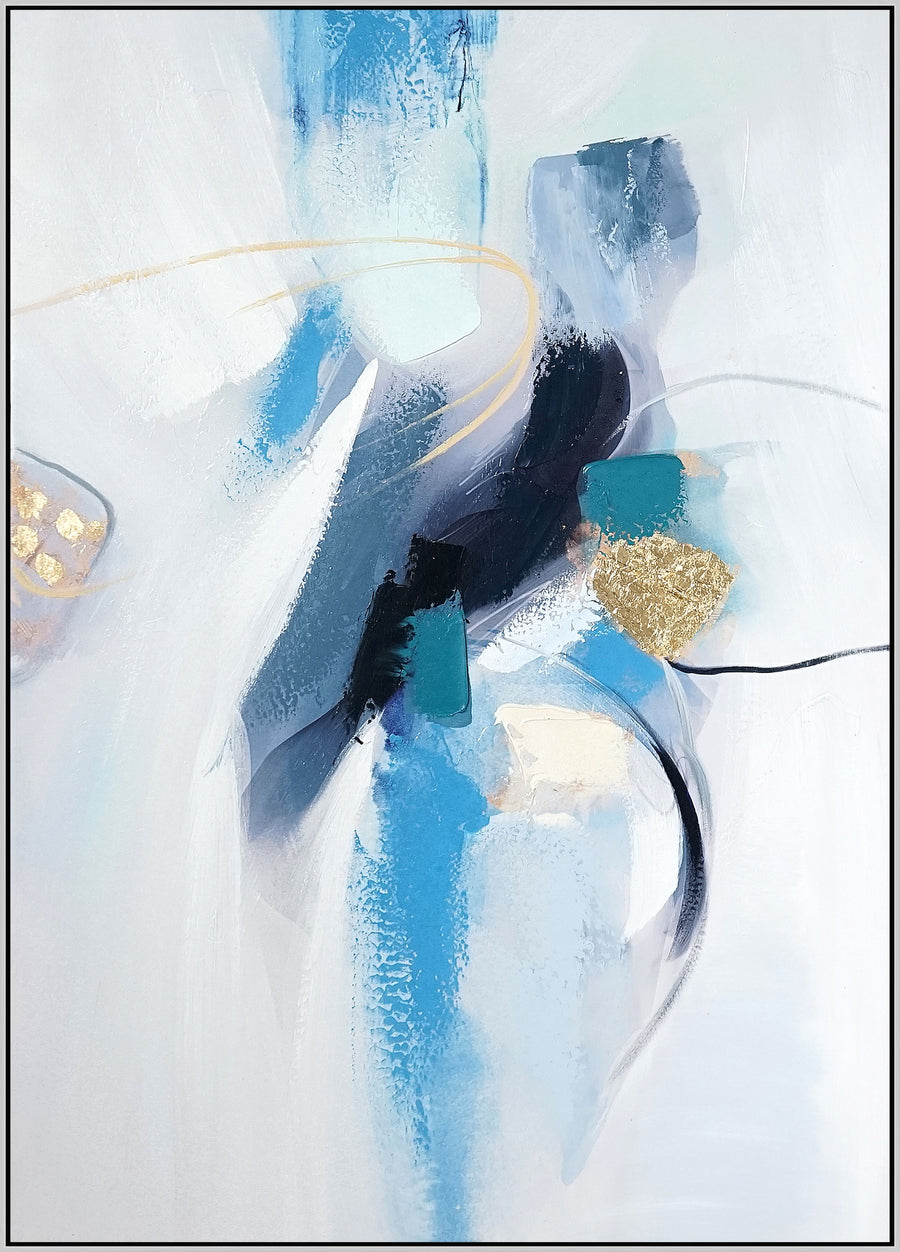 28x39 Hand Painted Textured Canvas With Foil In Frame - Blue