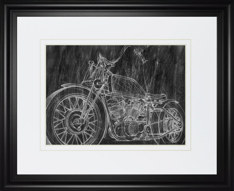 34x40 Motorcycle Mechanical Sketch II By Ethan Harper - Black