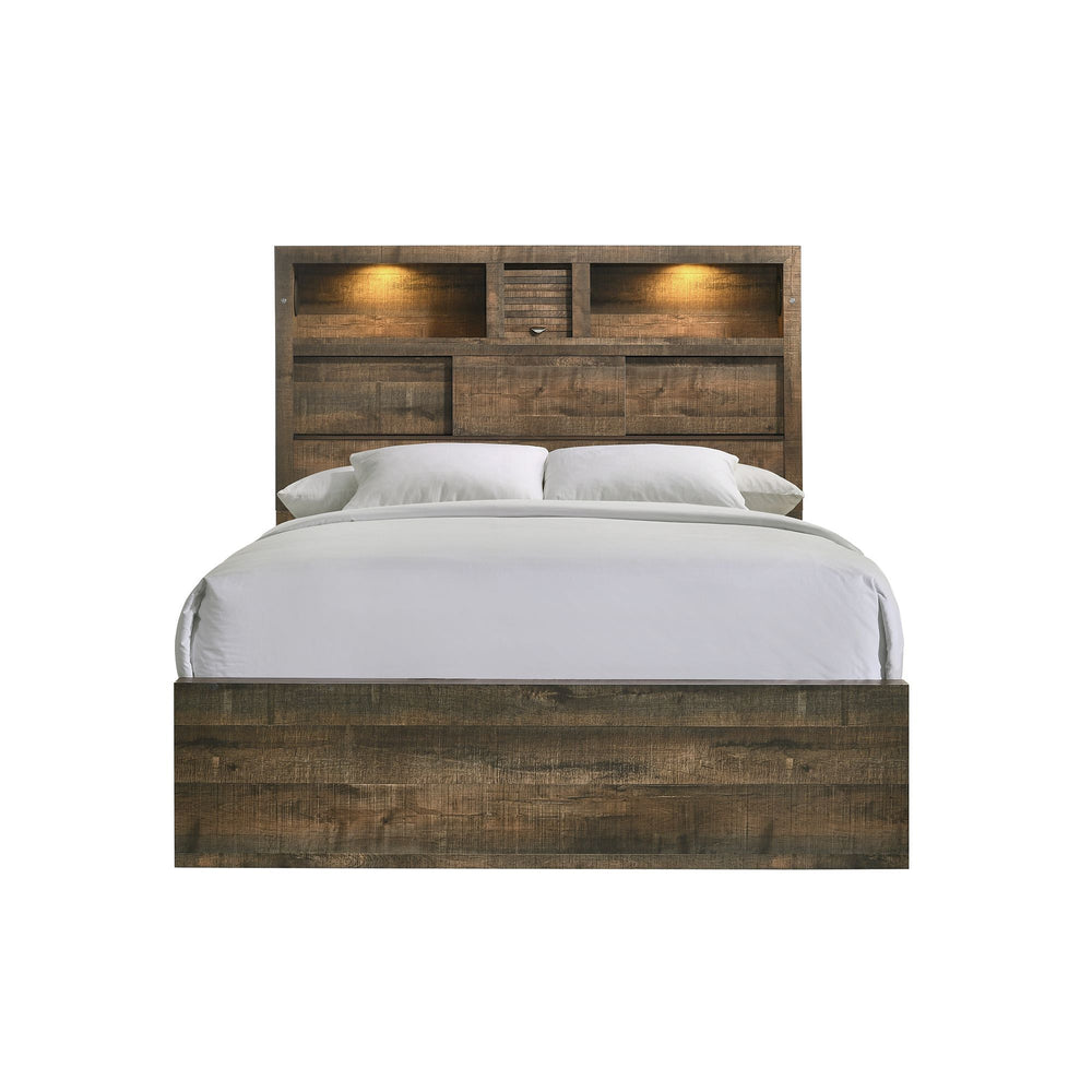 The Bailey Bookcase Panel Bed is a bed youll never want to leave, and you wont have to! This panel bed features Bluetooth capabilities with built-in speakers. There is also a USB port so you can easily charge your device while still keeping in in reach. There is also touch, mood lighting in the headboard to provide enough light to wind down at the end of the day. Roll top and sliding doors easily keep anything out of sight that you dont want seen. The natural wood knots and wood grain design on the surface pair beautifully with this finish. Add this awesome bed to your home today, not only for its sleek look, but also for its functionality!