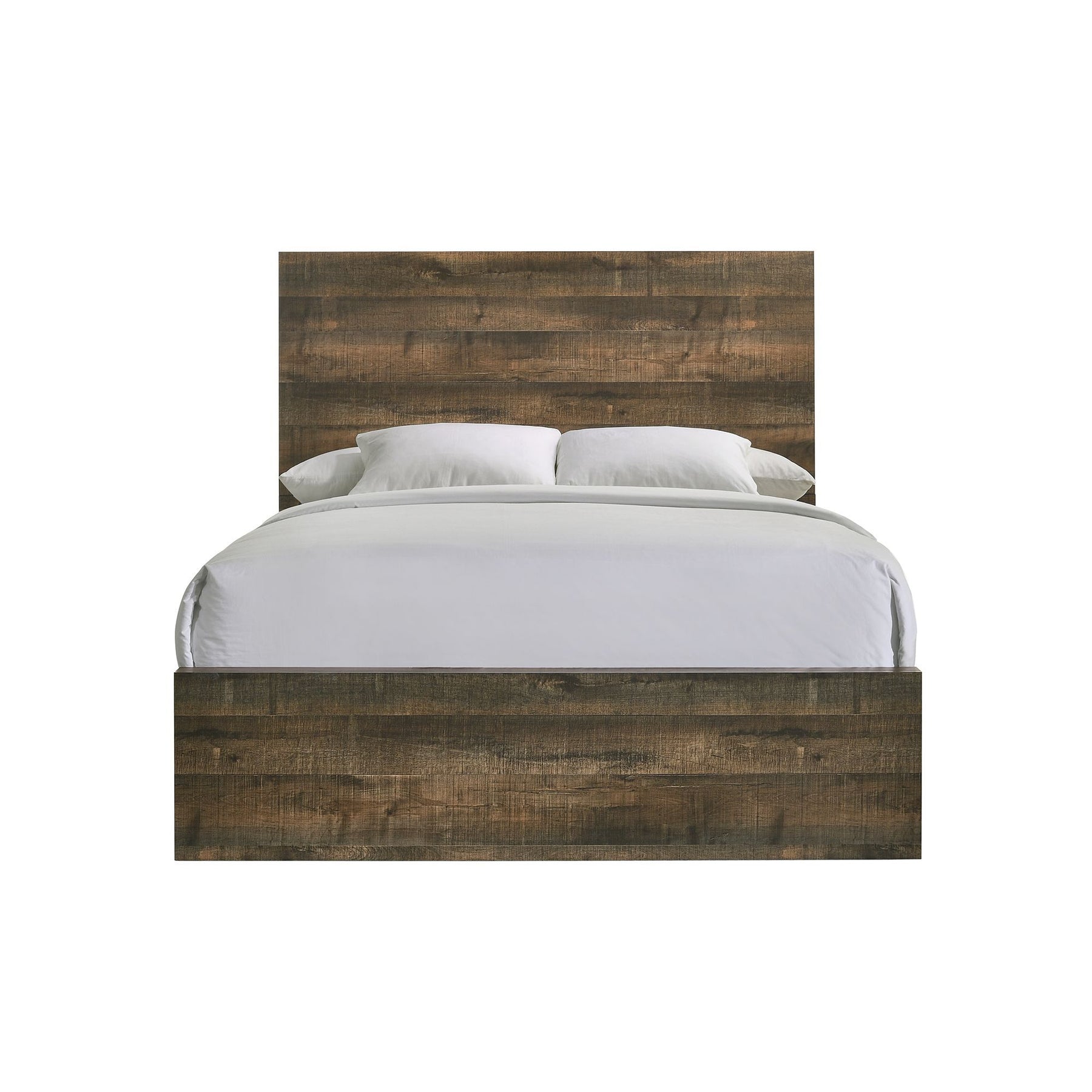 The Bailey King Panel Bed is a bed you'll never want to leave, and you won't have to! The natural wood knots and wood grain design on the surface pair beautifully with this walnut finish. Crafted from solid rubberwood and completed with a distressed finish. Give your room a refresh with this transitional, sleek bed. Box spring required.
