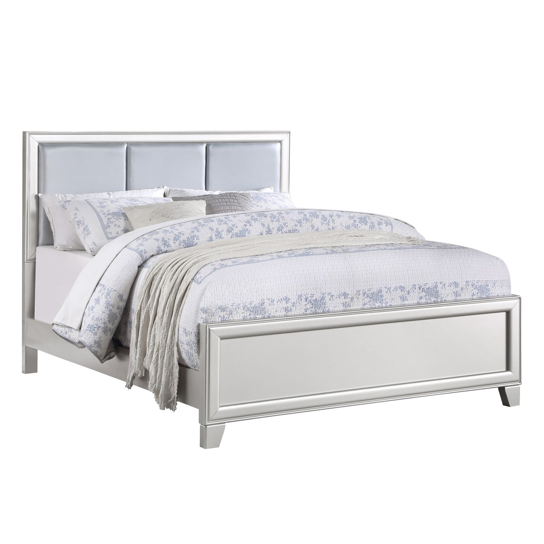 A glamourous contemporary bed with an upholstered headboard and sparkling finish. The Omni Bed promises to upgrade the look of any bedroom instantly. A cool upholstered leatherette headboard offers a comfy and stylish addition to the bed setup while a framed footboard completes the look.