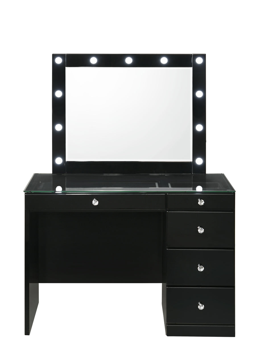 Morgan - Vanity Desk With Glass Top And LED Mirror - Black