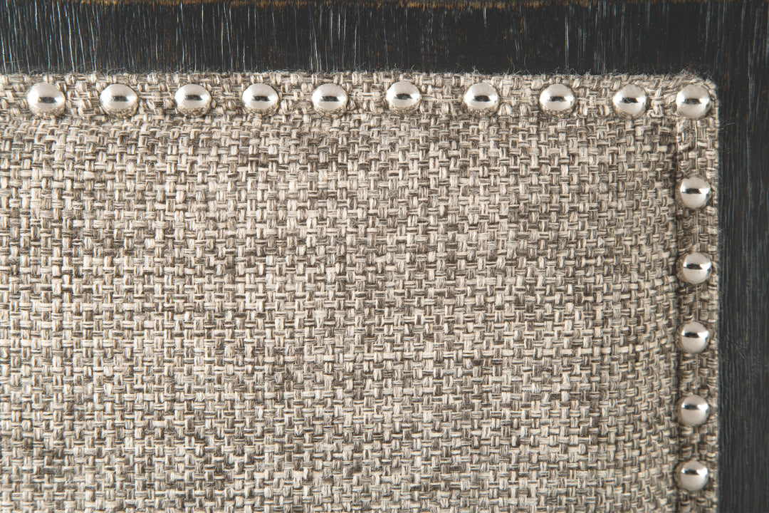 - Grayish brown polyester upholstery with nailhead trim