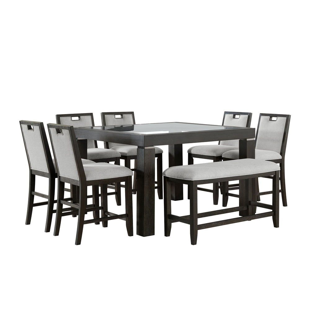 Robbinsdale - 9 Pc. - Rectangular Counter Height Dining Extension Table, 6 Barstools, Bench, Server - Antique White