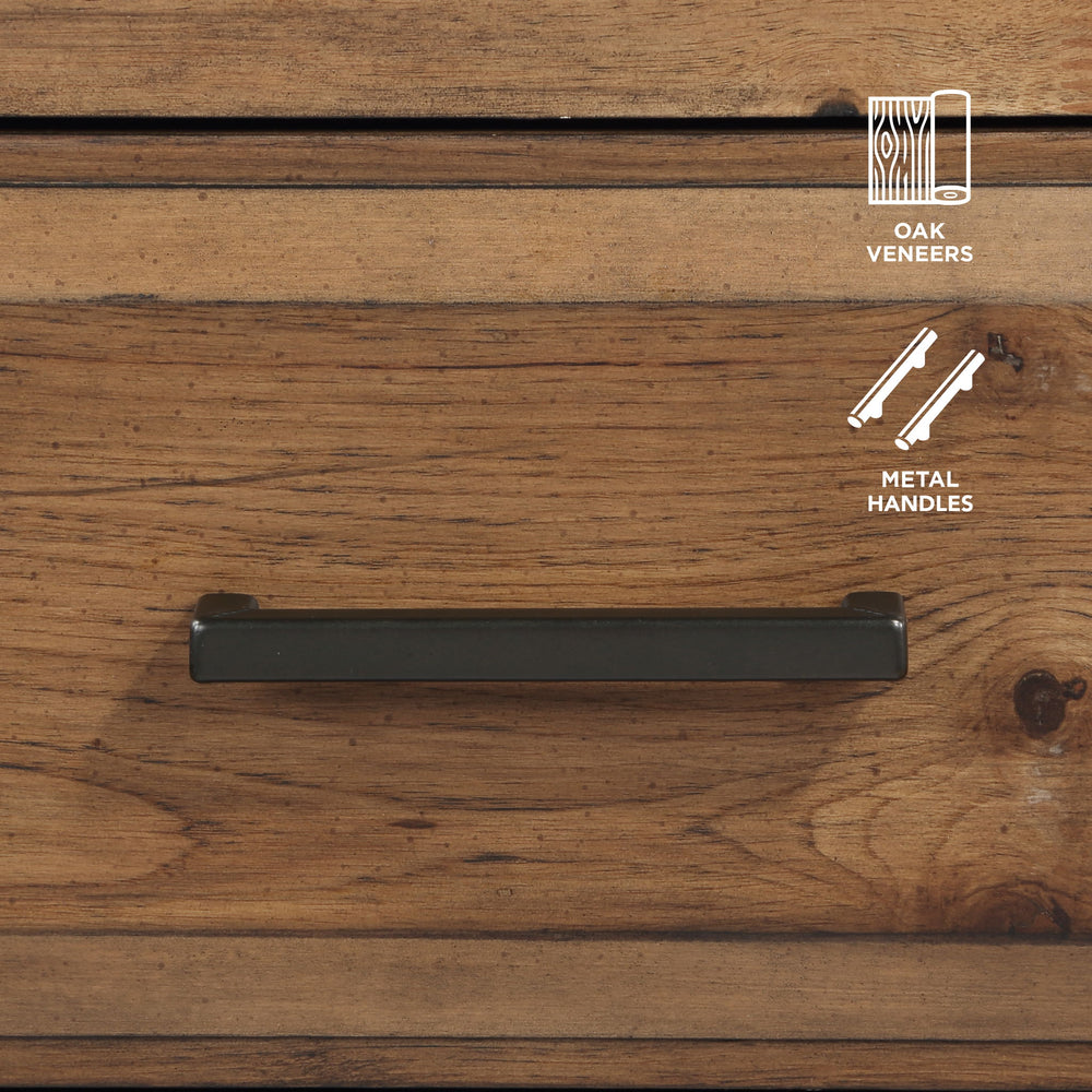 - Made with hardwood solids, acacia wood veneer, MDF substrate and cast resin components