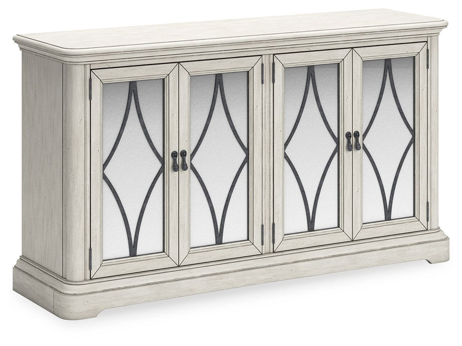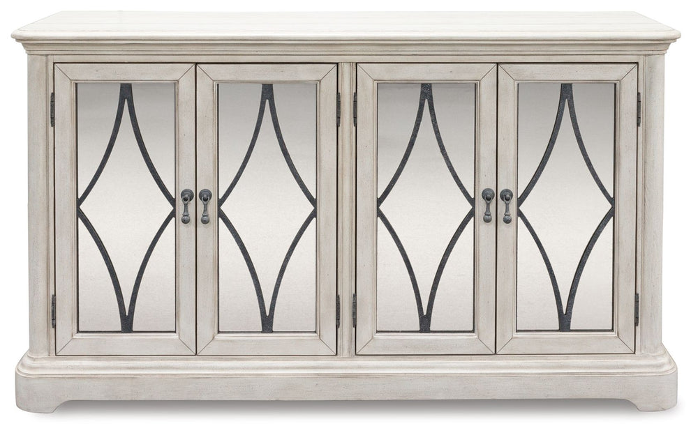 - 2 double-door mirrored cabinets with overlay fretwork, each with 2 adjustable shelves