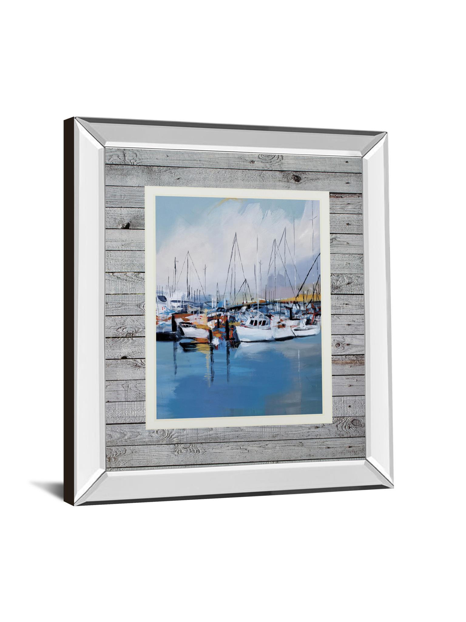 Along The Quay By Fitsimmons, A. - Mirror Framed Print Wall Art - Blue