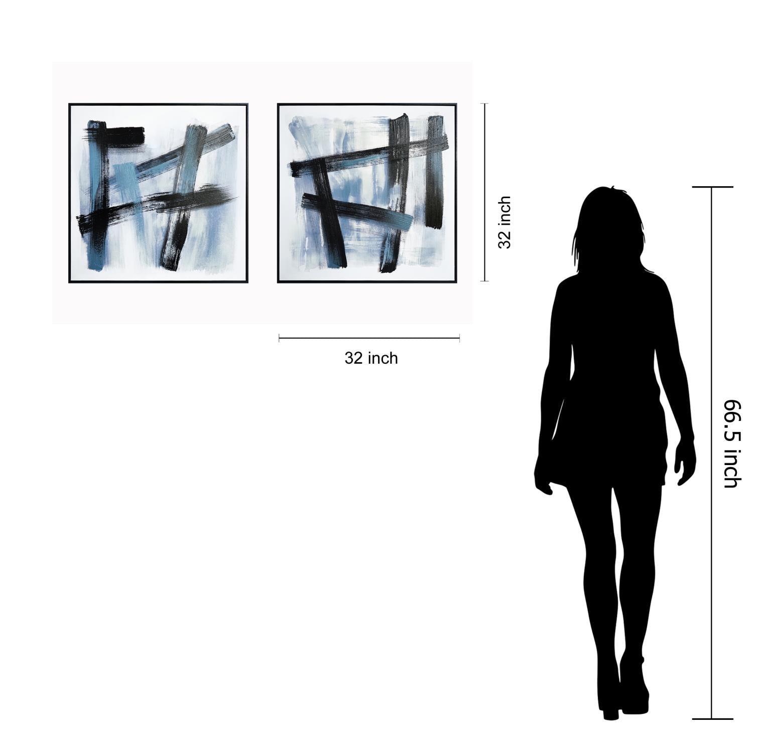 Hand Painted Textured Canvas in Frame 64x32 (Set of 2) - Blue