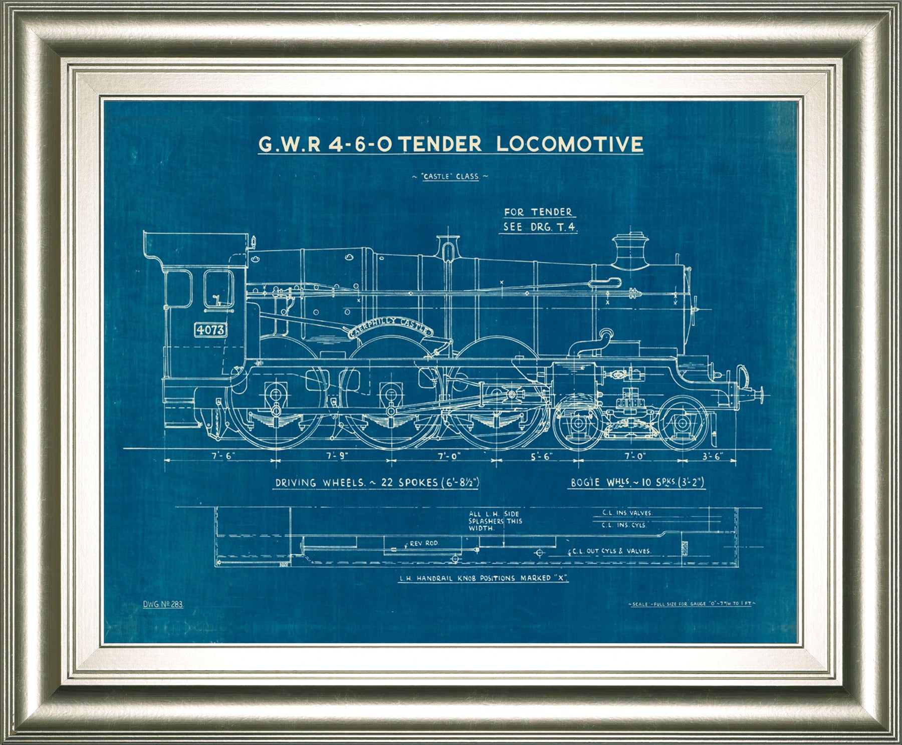 Locomotive Blueprint I By Wild Apple Portfolio - Framed Print Wall Art - Blue