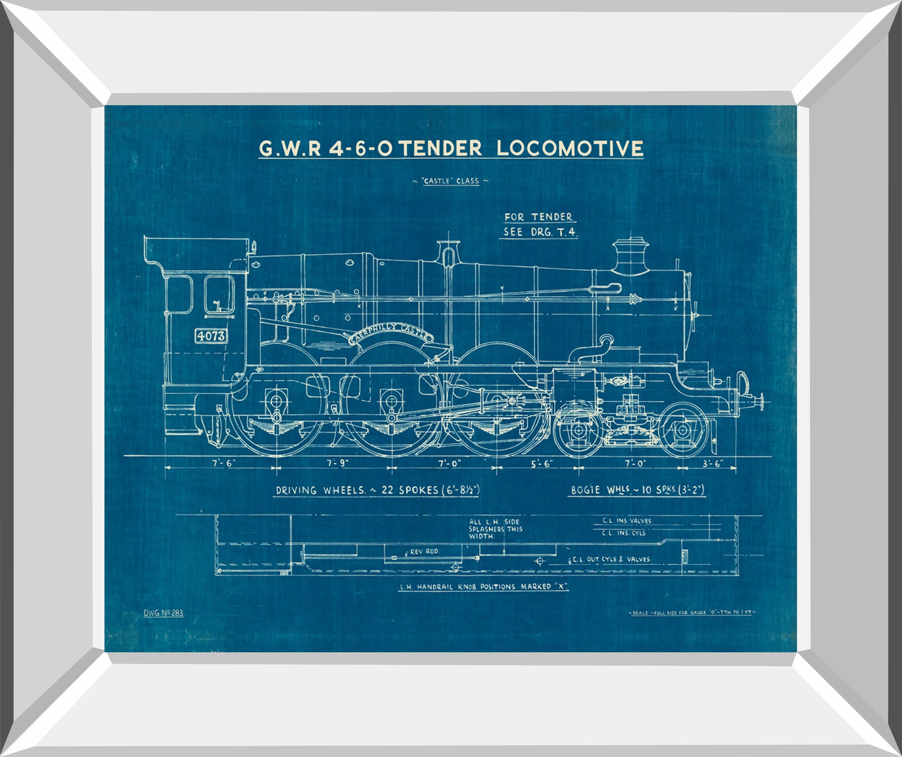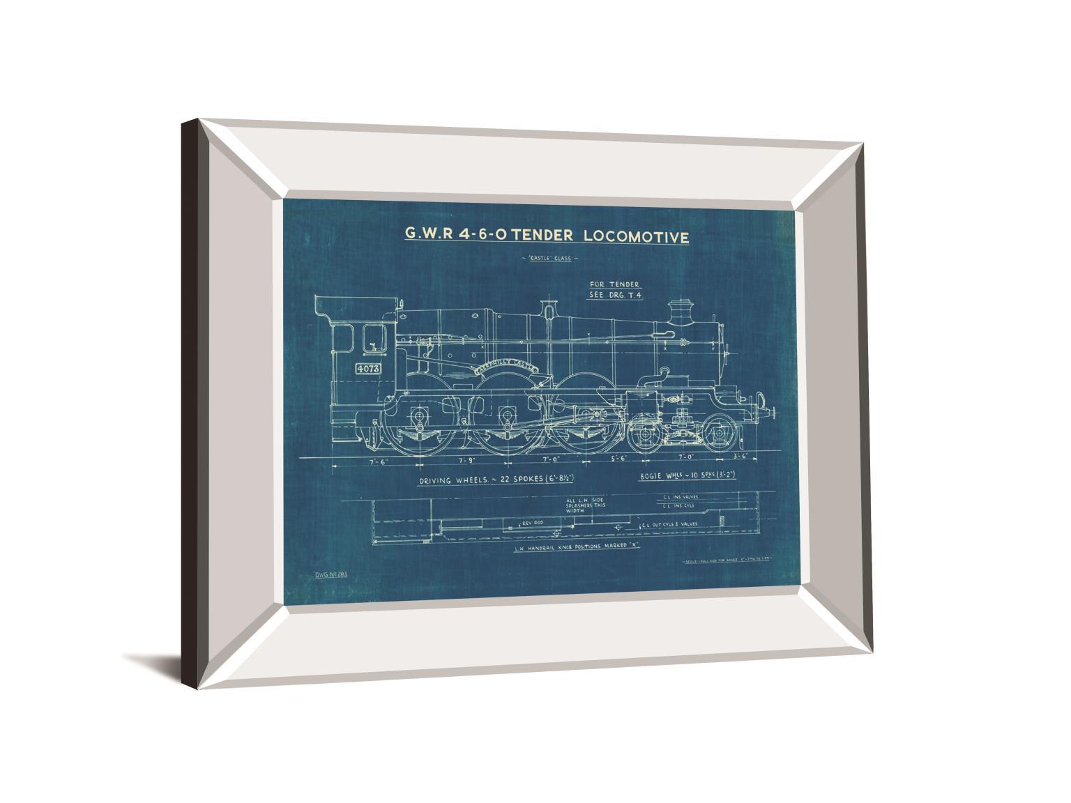 Locomotive Blueprint I By Wild Apple Portfolio - Mirror Framed Print Wall Art - Blue