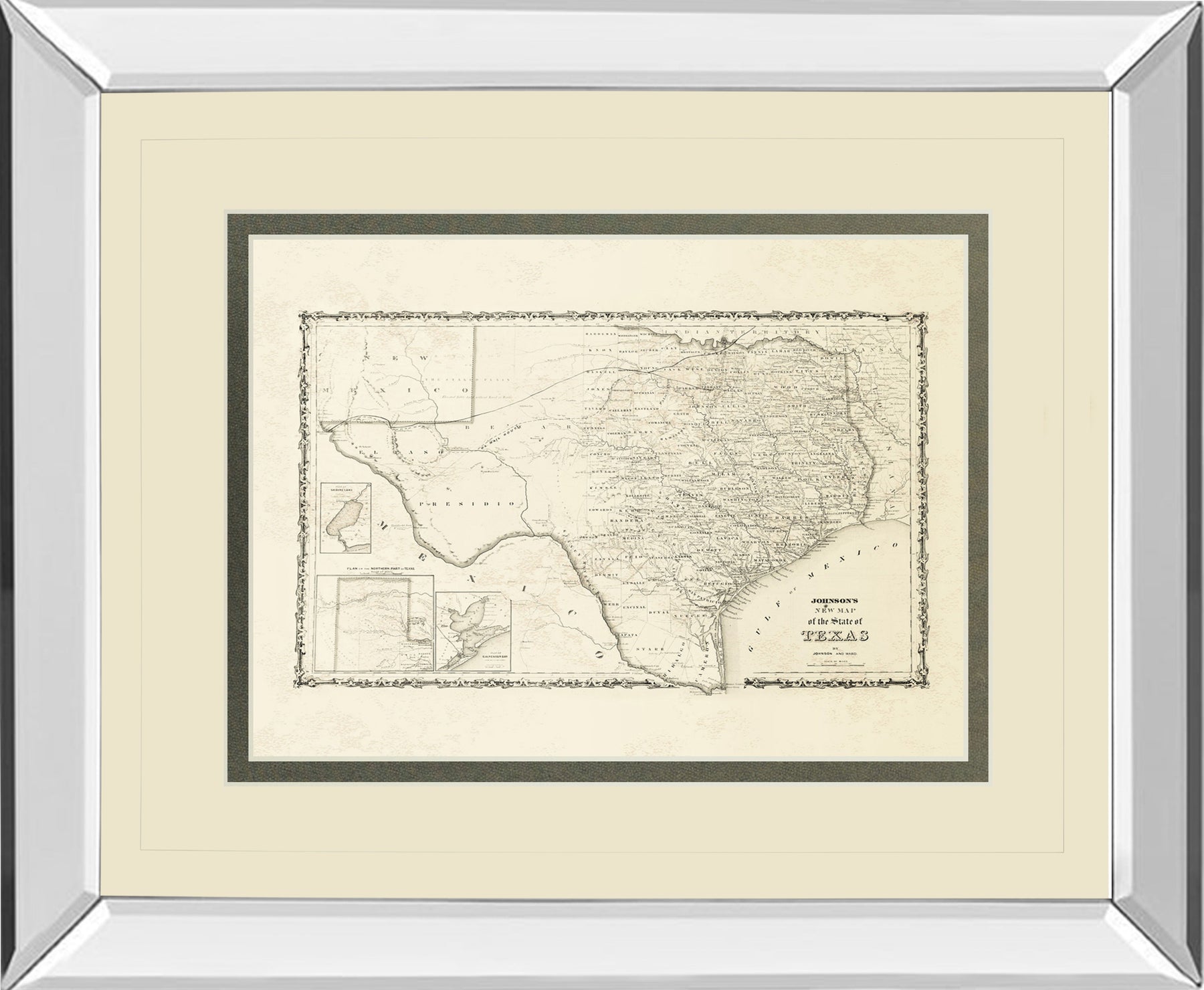 New Map Of The State Of Texas By Johnson And Wank - Mirror Framed Print Wall Art - White