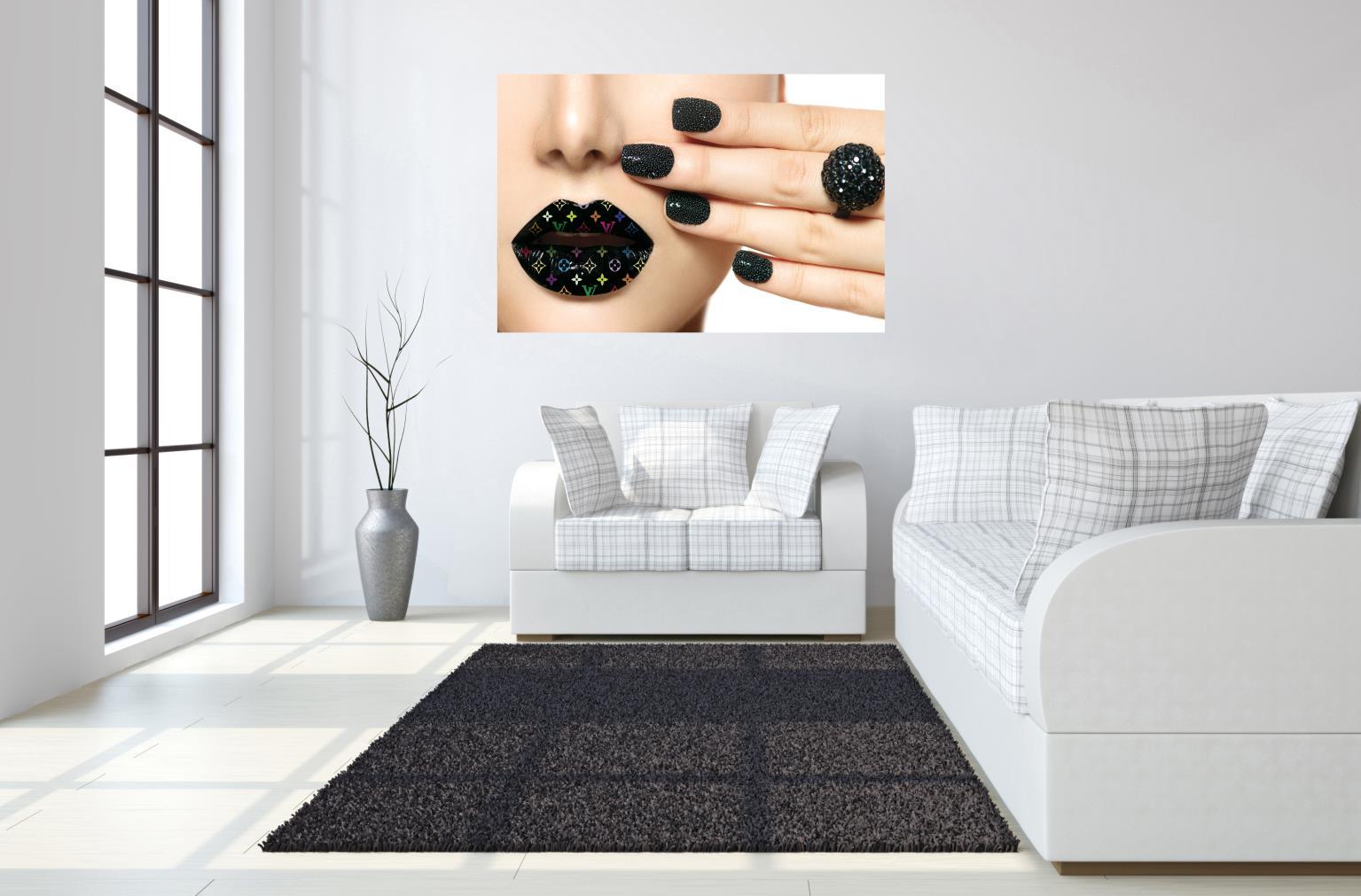 Tempered Glass With Foil & Rhinestones - Design Her Lips - Beige