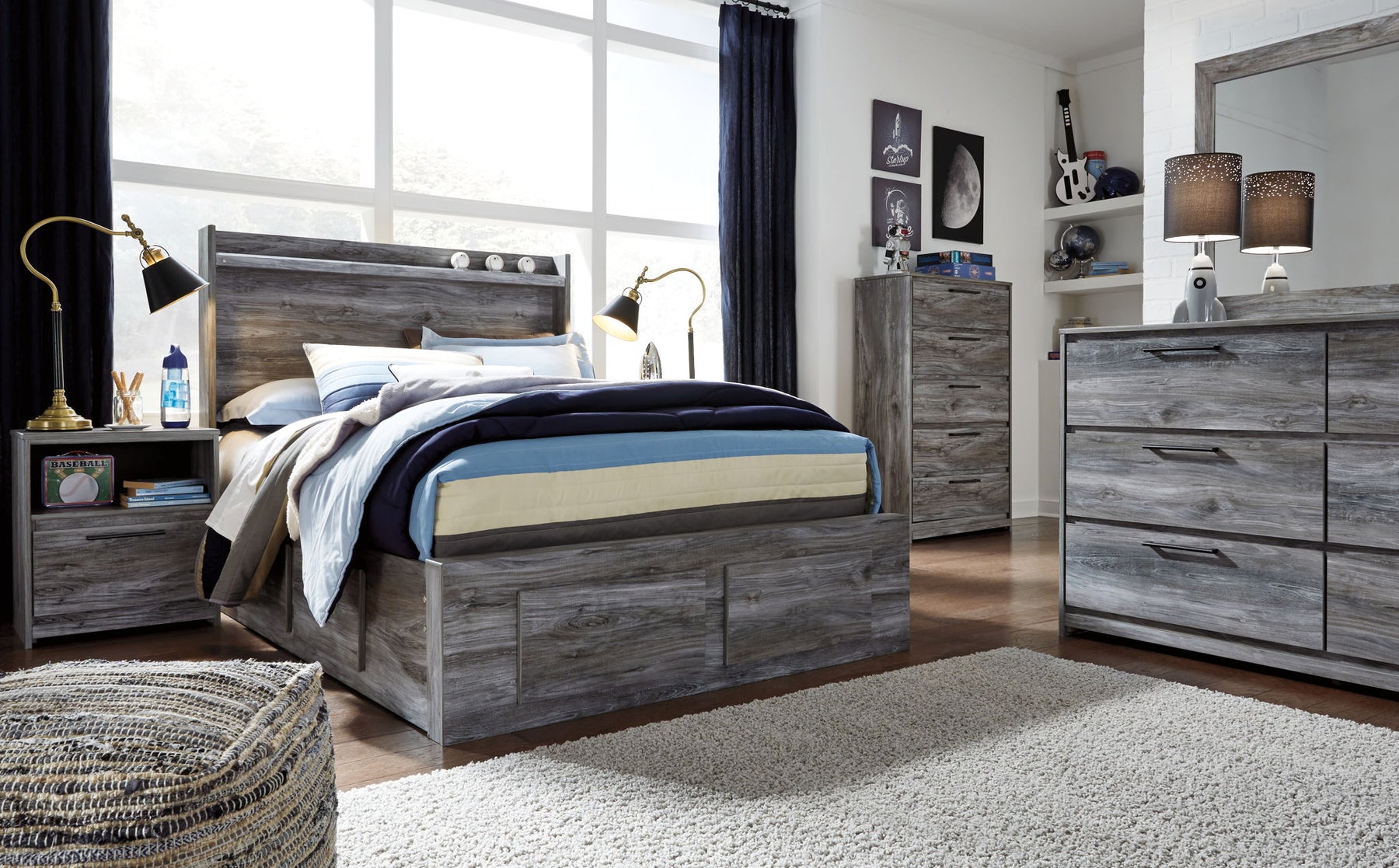 Baystorm - Full Panel Bed With 2 Storage Drawers - 6 Pc. - Dresser, Mirror, Full Bed - Gray