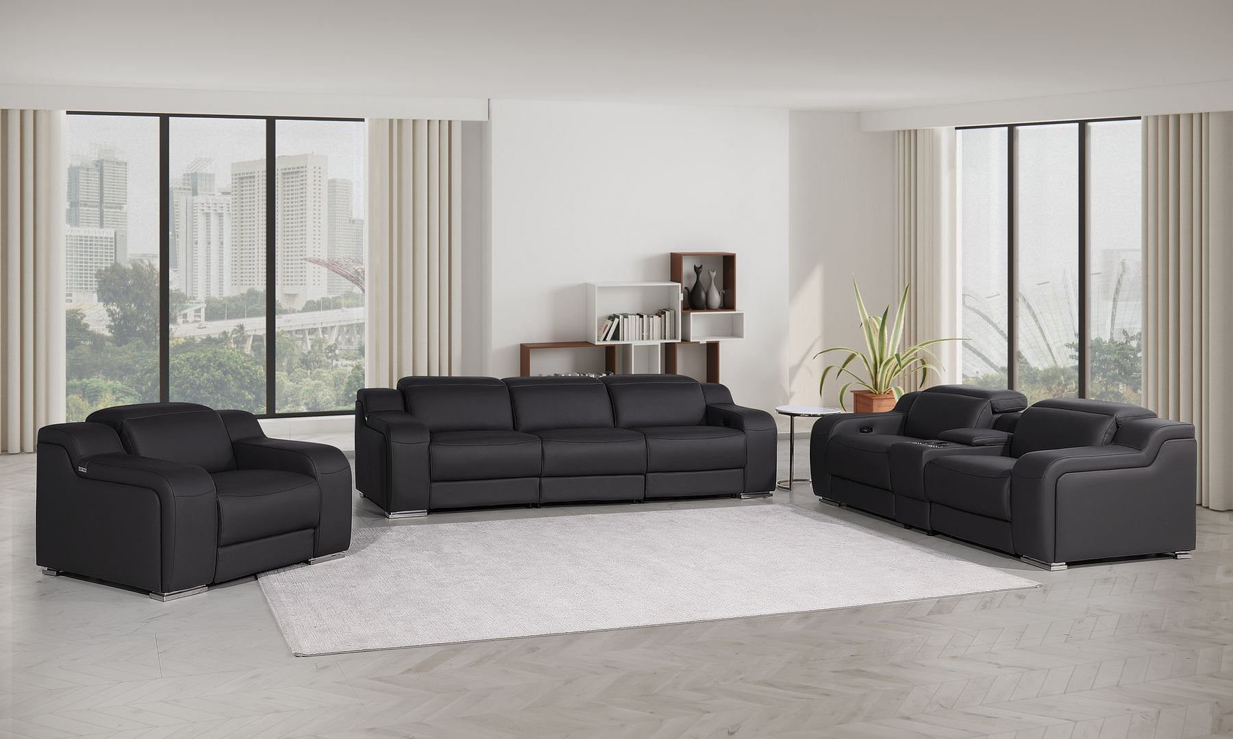 1116 - 7-Piece Modular Power Reclining Sofa, Loveseat & Chair Set In With 6 Power Recliners & Power Headrests - Black