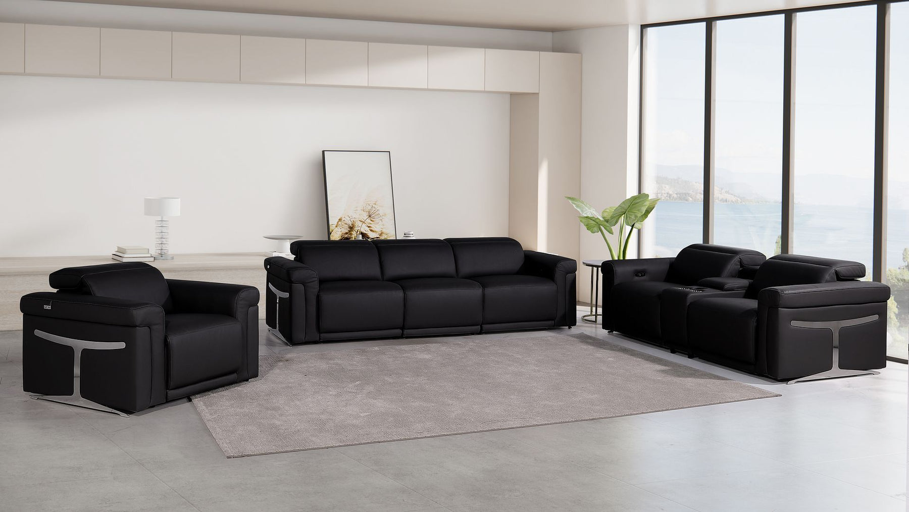 1126 - 7-Piece Modular Power Reclining Sofa, Loveseat & Chair Set In With 6 Power Recliners & Power Headrests - Black