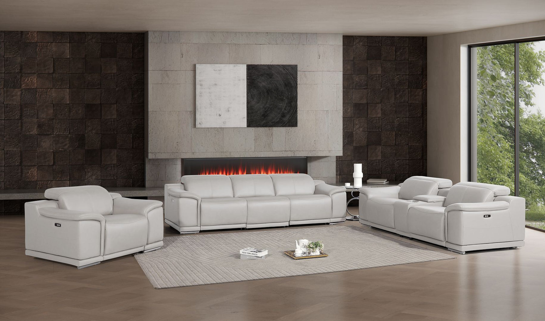 2679 - Power Reclining Sofa, Console Loveseat & Chair Set In Genuine Leather (5 Recliners) - Light Gray