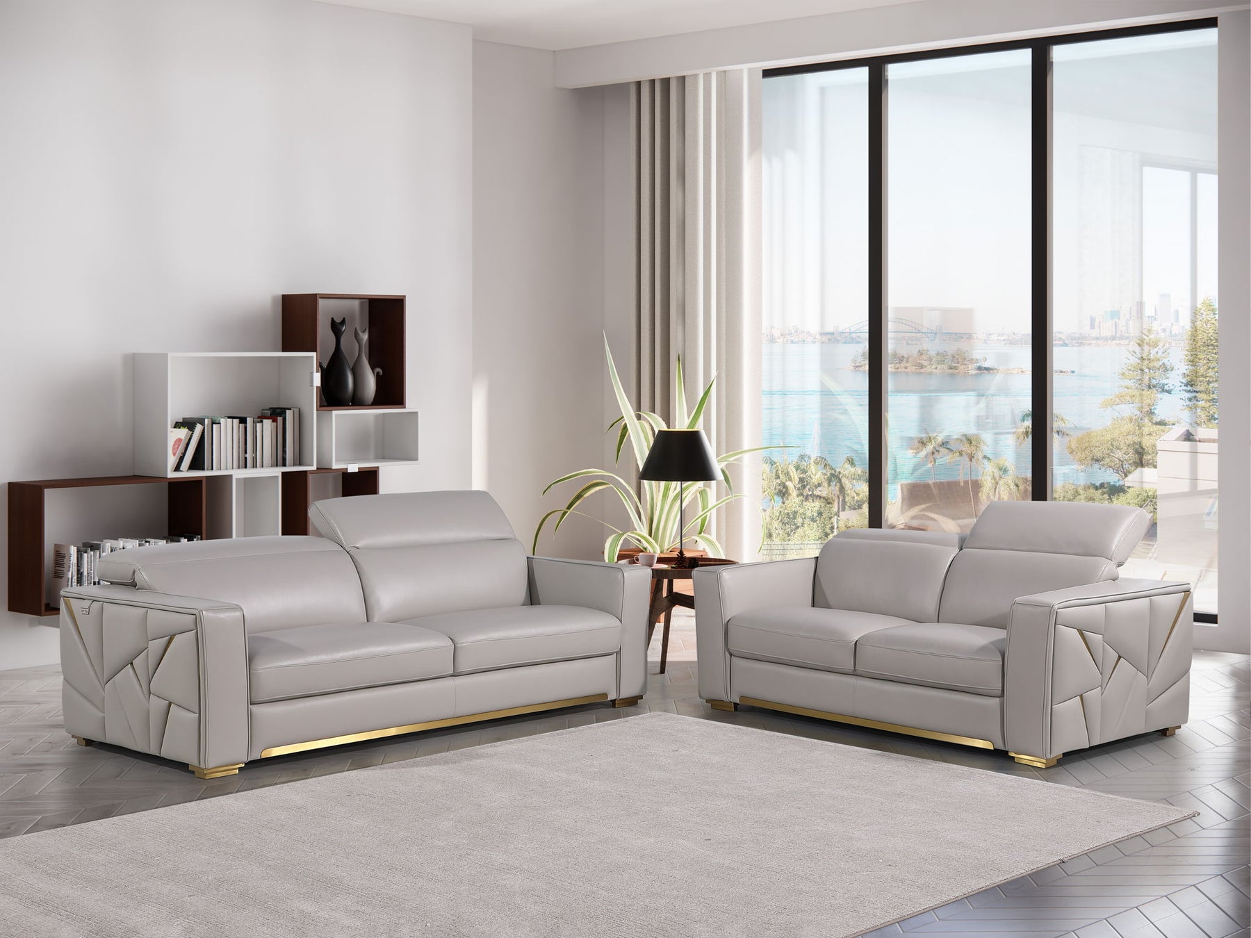 1120 - Top Grain Italian Leather Sofa And Loveseat - Light Gray