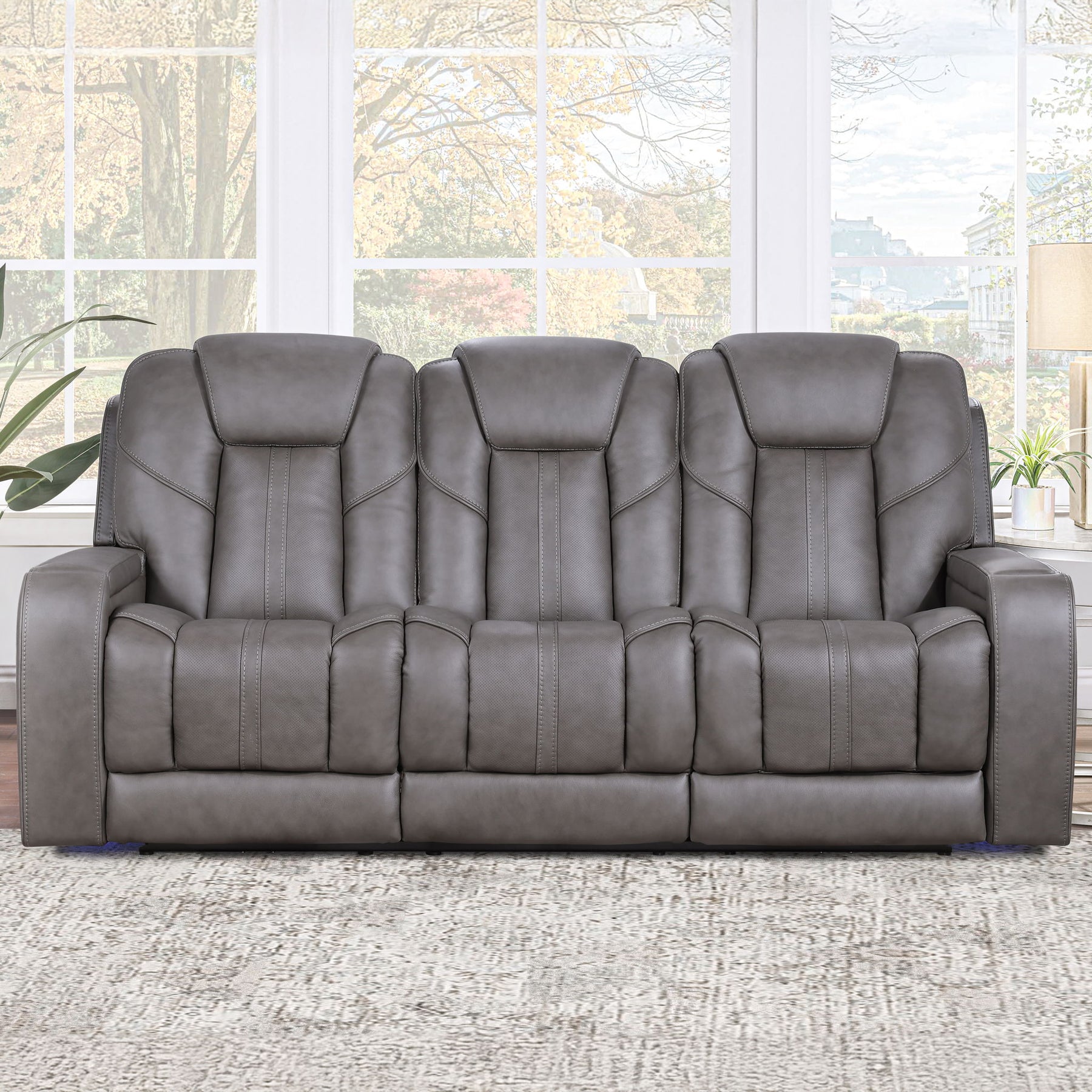 Daniel - Triple Power Leather Theater Sofa - Gray