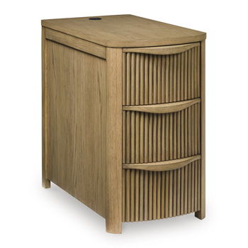 This chairside end table elevates your living room with both sleek style and must-have modern function. Reeded detailing lends a contemporary appeal, while subtly integrated drawers stow essentials with ease. USB ports round out the design, allowing you to keep devices within reach while charging.