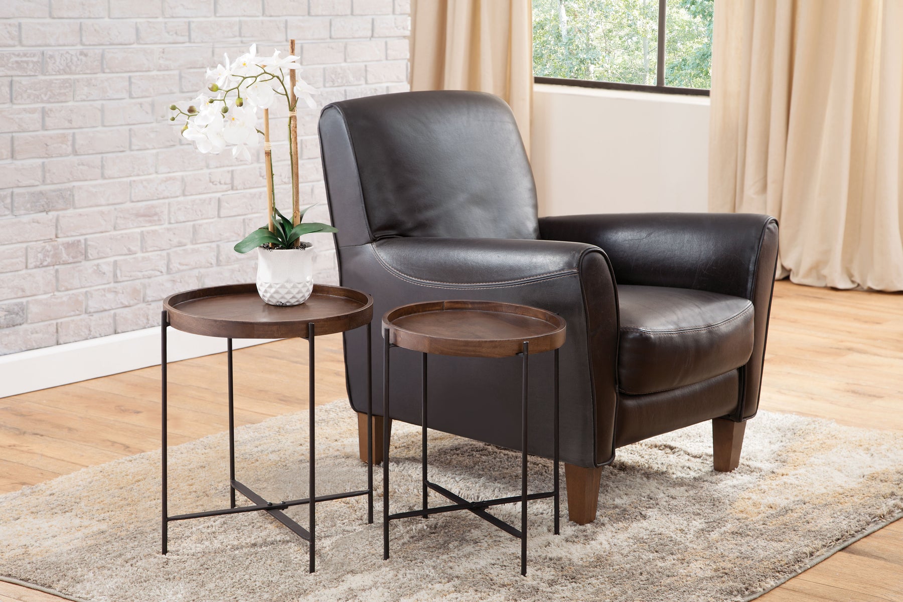 The Steve Silver Co. Capri Round Accent Tables - Set of 2 are a primer in understated elegance. Designed to double duty side by side or be used separately as accents in different parts of a room, these tables will quietly blend in with your existing décor or step forward as focal points of understated modernism. Wooden tray-style tops provide space for you to rest your beverage or snack, place candles or other decorative items. The thin metal frame extends gracefully to four points on the floor with a crisscross piece at the bottom to provide style and stability.