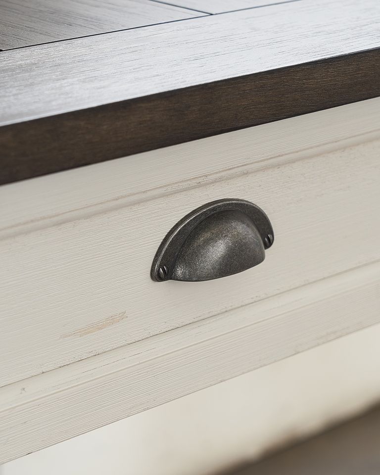 - Collection features rustic styling with plank-effect tops and beefy legs. Thick tops and large scale give tables a very substantial feel.