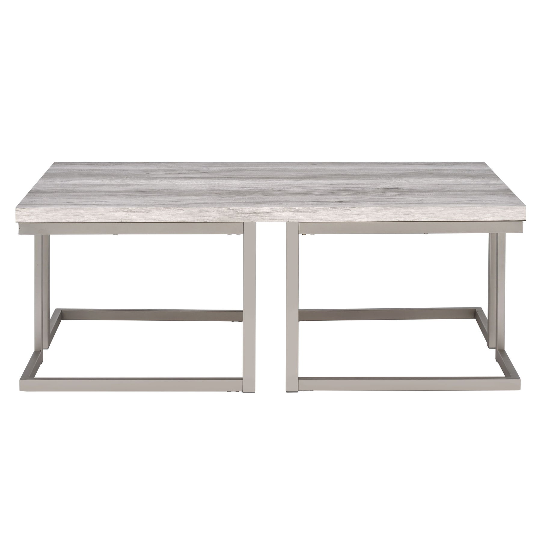 Refined rustic style comes to your living room with David occasional tables from Steve SIlver Company. The contemporary styled matte pewter colored base features an interesting geometric shaped base that combines with the Silvershield® driftwood colored top to create a table collection comfortable in today's neutral environments. Choose from cocktail or end table.