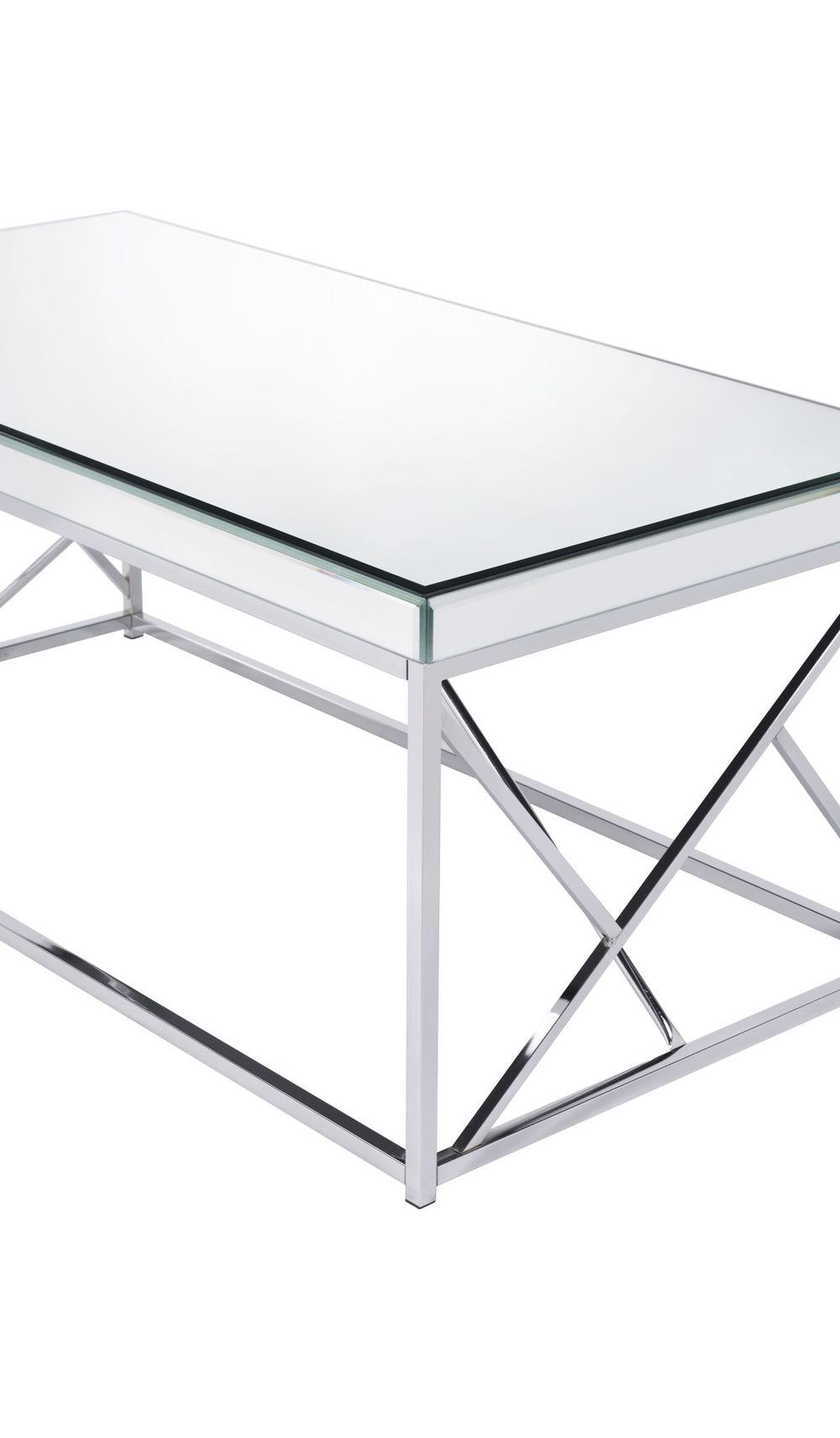 - Constructed of mirror tops and sides with iron base in chrome finish