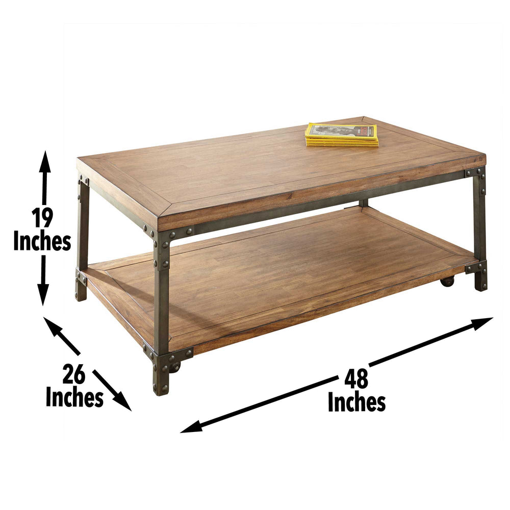 - Crafted of engineered woods with Acacia veneers and black metal frame
