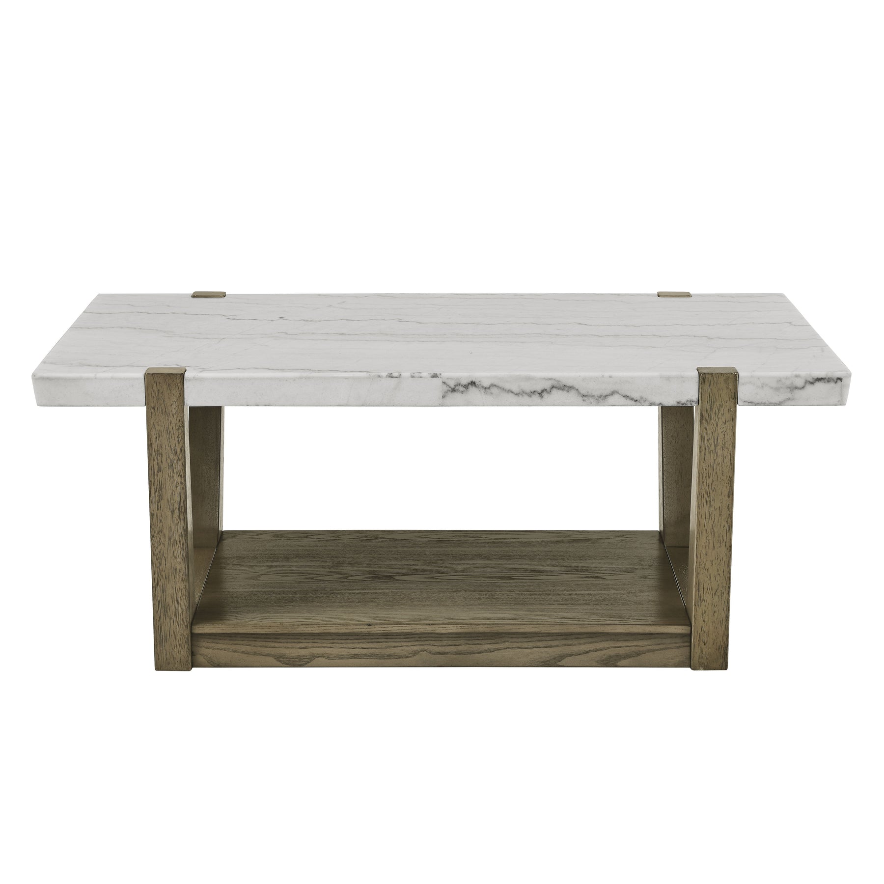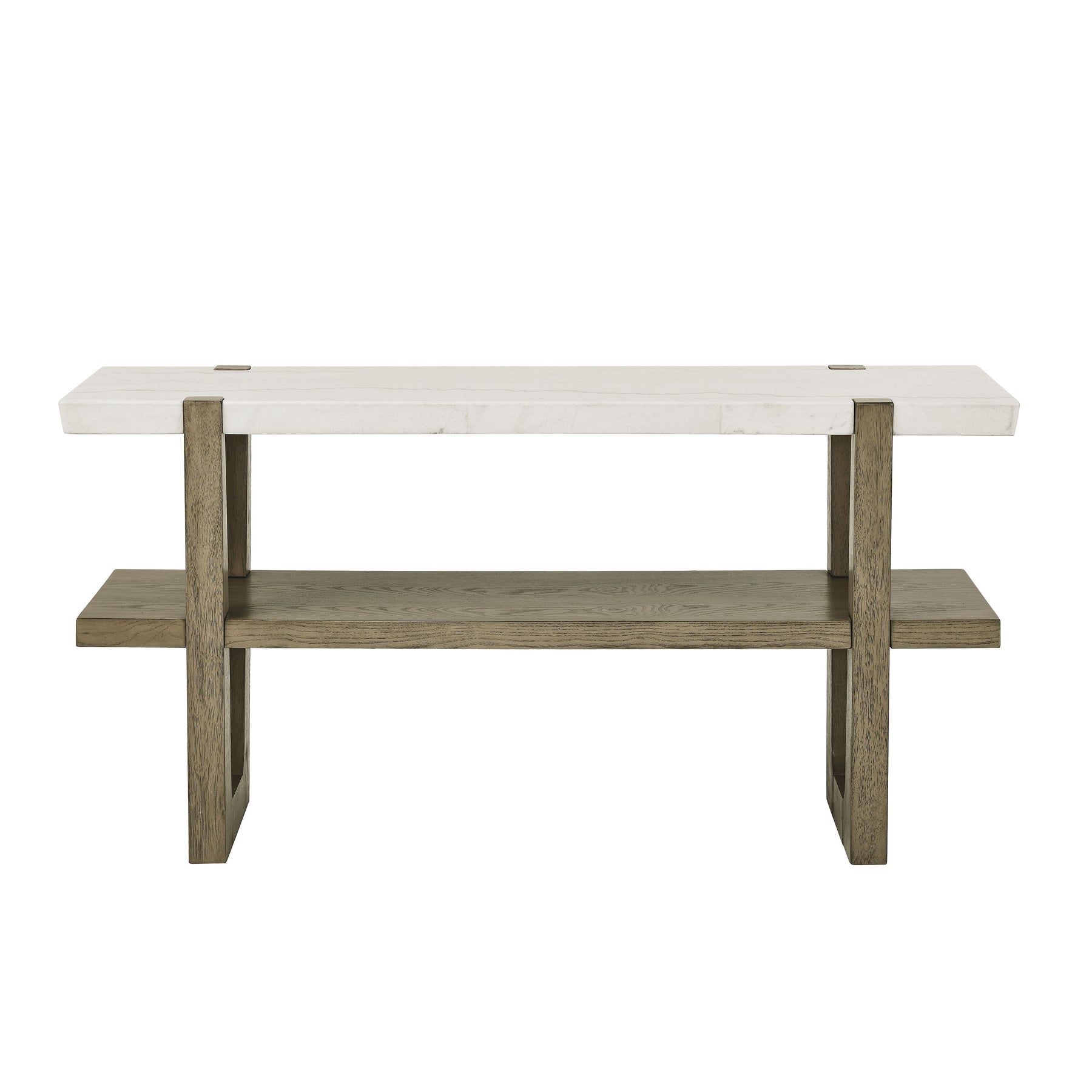 Elevate your space with the Marble Top Table, a stunning accent piece for any room. Crafted from veneers and hardwood solids, it features a striking white marble top paired with weathered solid wood legs, adding sophistication to your decor. With a built-in shelf for display or storage, and a bold, substantial frame, this table offers both functionality and elegance, making it a standout addition to your home.