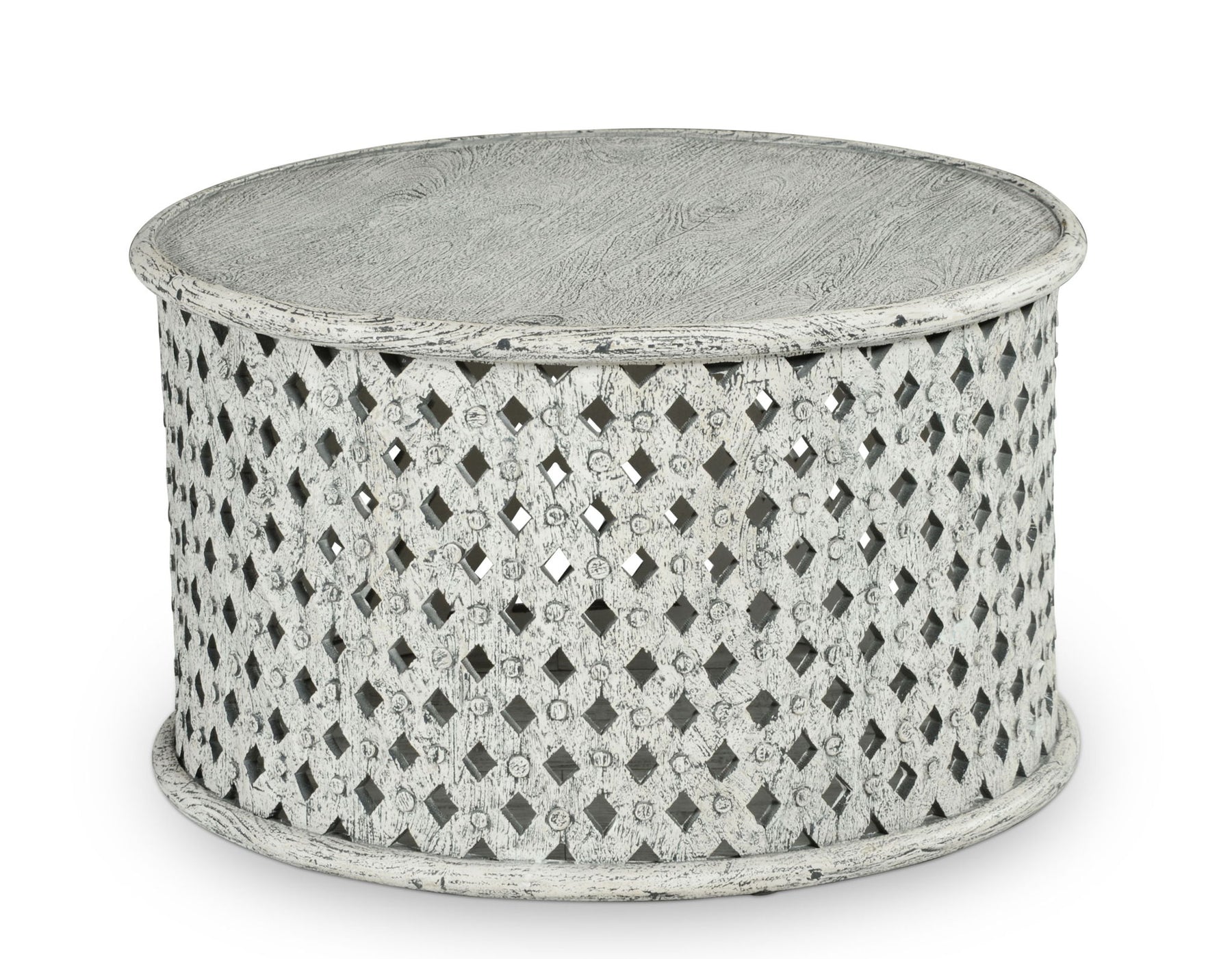 Samir - Round Tribal Carved Wood Cocktail Table - White