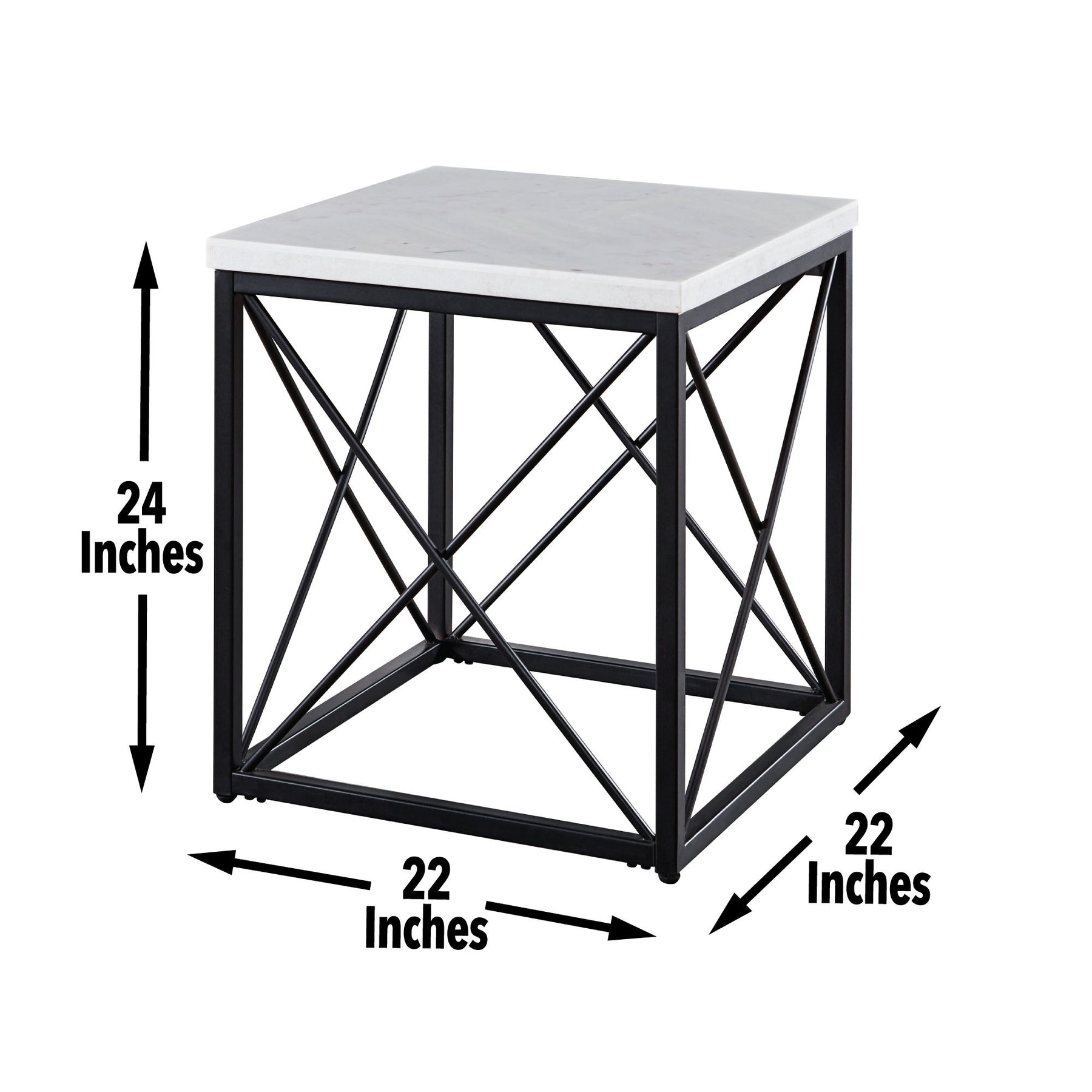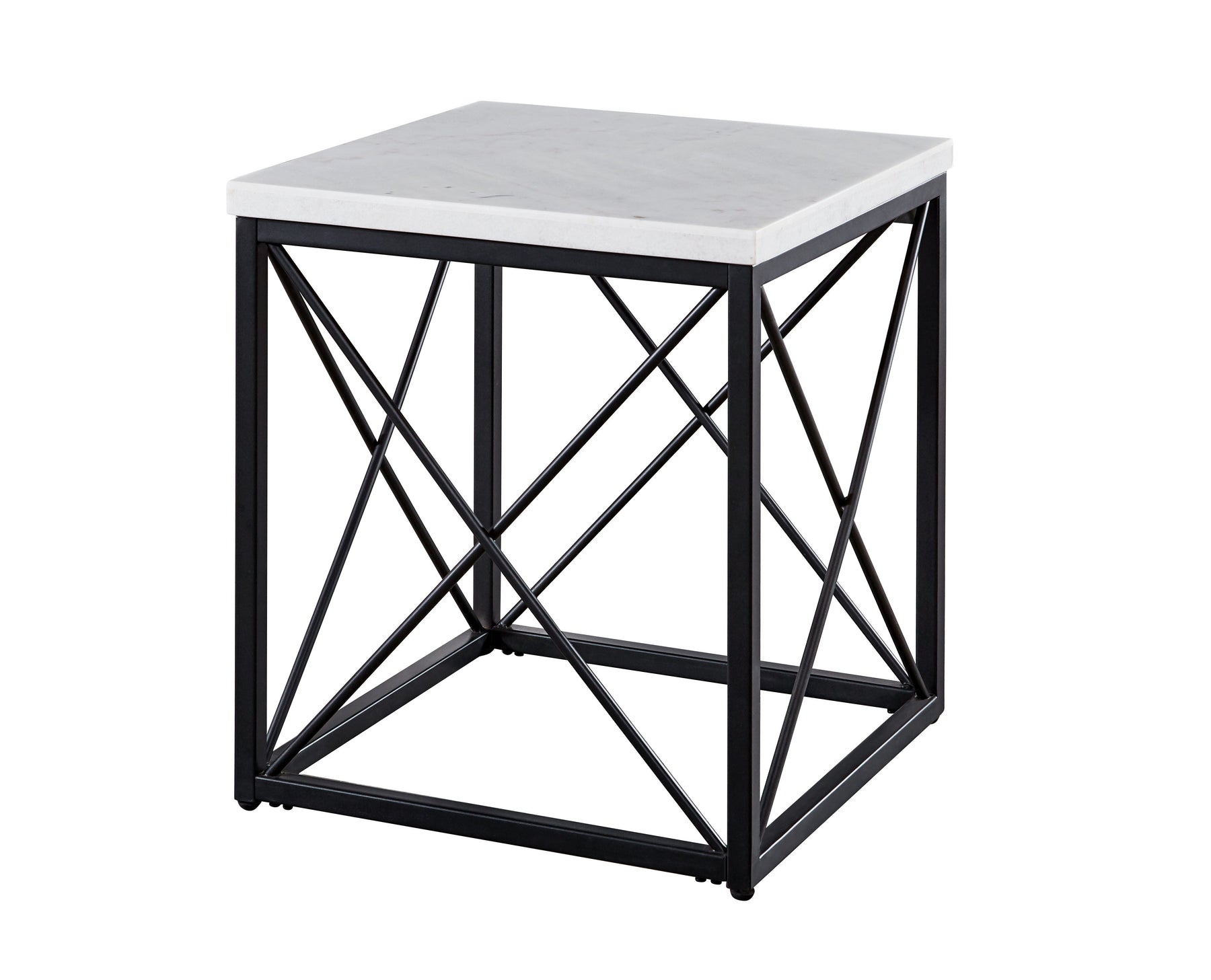 A modern occasional collection featuring a unique modern latticework iron base with stunning white marble tops. This mixed media set feels light and airy but its marble tops give extra durability for heavy duty use in the toughest environments, the family room. Bring style and beauty to your living room tables with Skyler by Steve Silver Company.