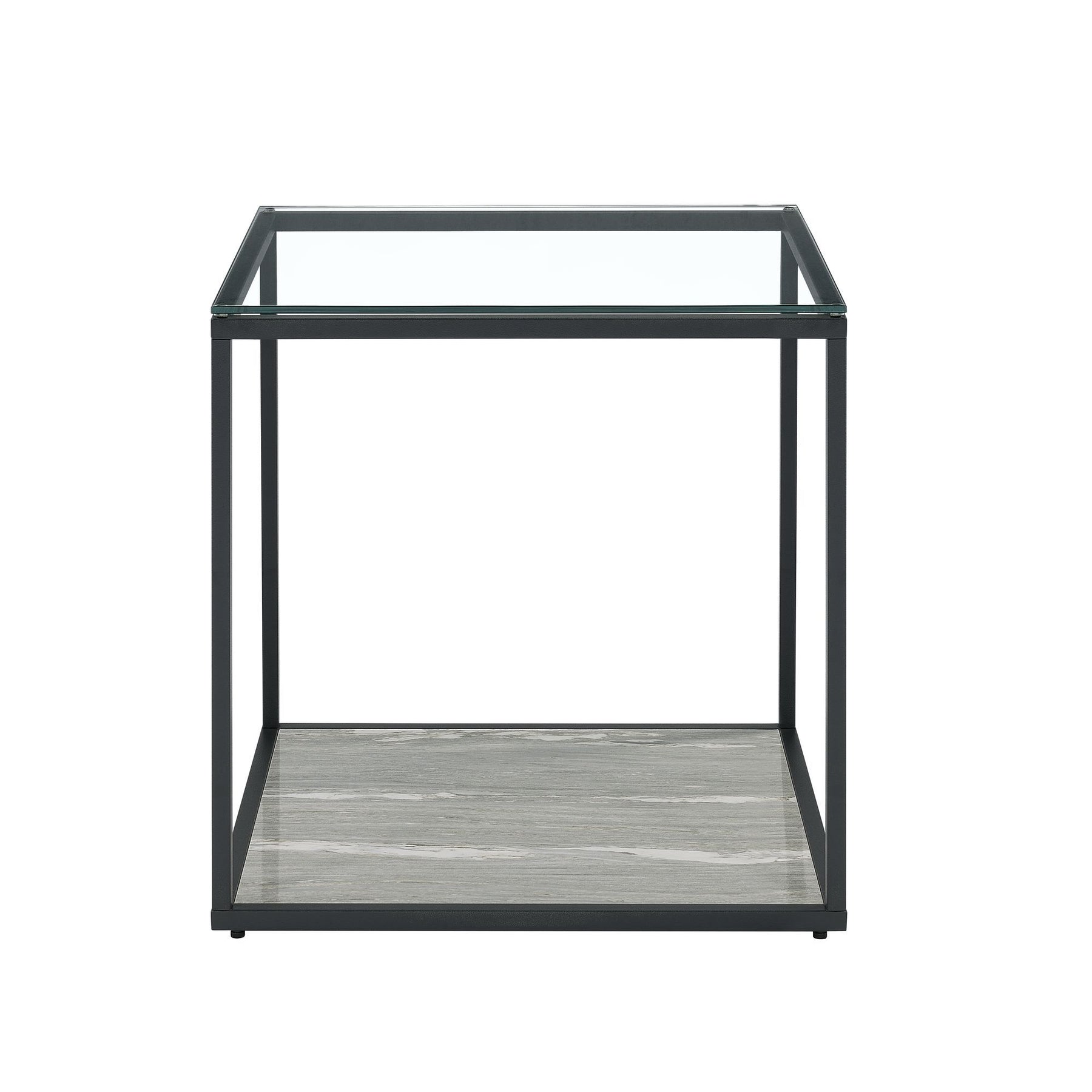 The Yasmin Table offers a stylish and contemporary addition to any living space. With a sleek tempered glass top and a convenient bottom shelf, this table provide ample surface area for displaying decor or keeping your essentials within easy reach. The sturdy metal legs not only ensure stability but also lend an industrial charm to the design. It will be perfect for elevating the look of your home while providing functionality and versatility. Easy to assemble, the Yasmin Table is a must-have for those seeking modern elegance and practicality.