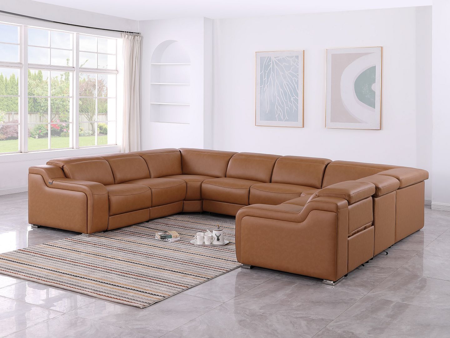 1116 - 8-Piece U-Shaped Sectional Sofa In With 4 Power Recliners & Power Headrests - Cognac