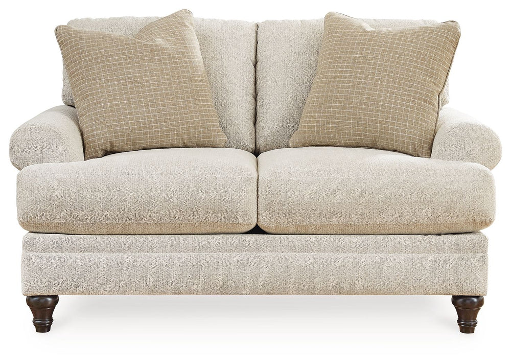 Seeking simple, transitional style? Enter this loveseat. Its commitment to carefree comfort is right at home with your relaxed living room aesthetic. A subtle chevron effect elevates the everyday charm of the neutral fabric, while the deep, plush seats bring a cozy vibe to this chic piece.