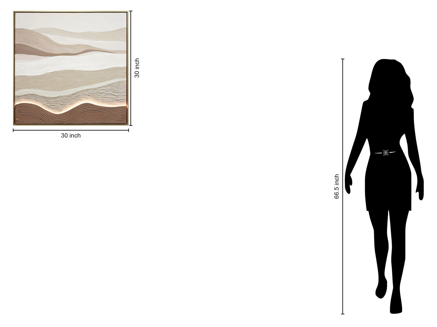 "Desert Glow I" Hand-Embellished LED In Frame - Beige / Cream