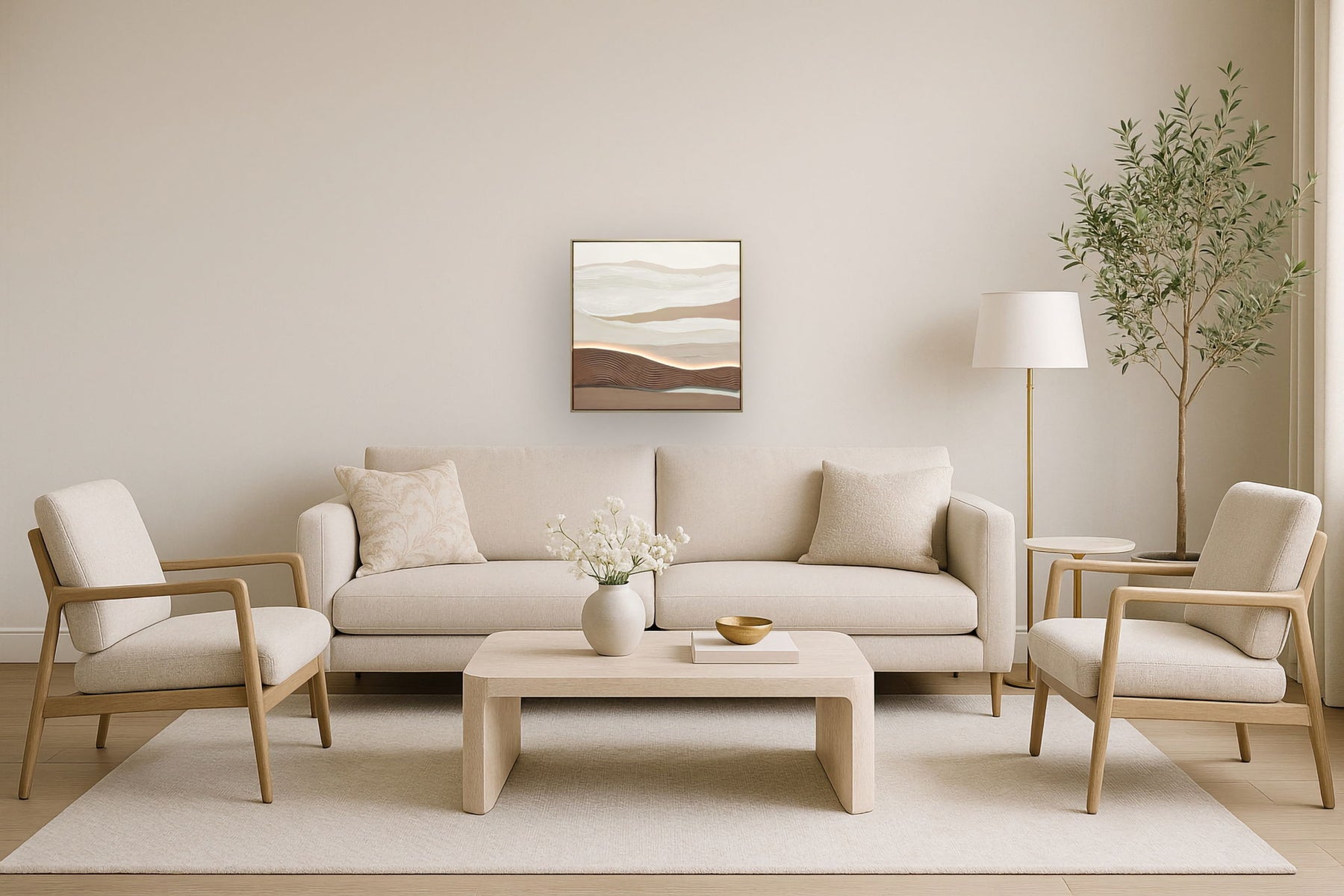 "Desert Glow II" Hand-Embellished LED In Frame - Beige / Brown / White