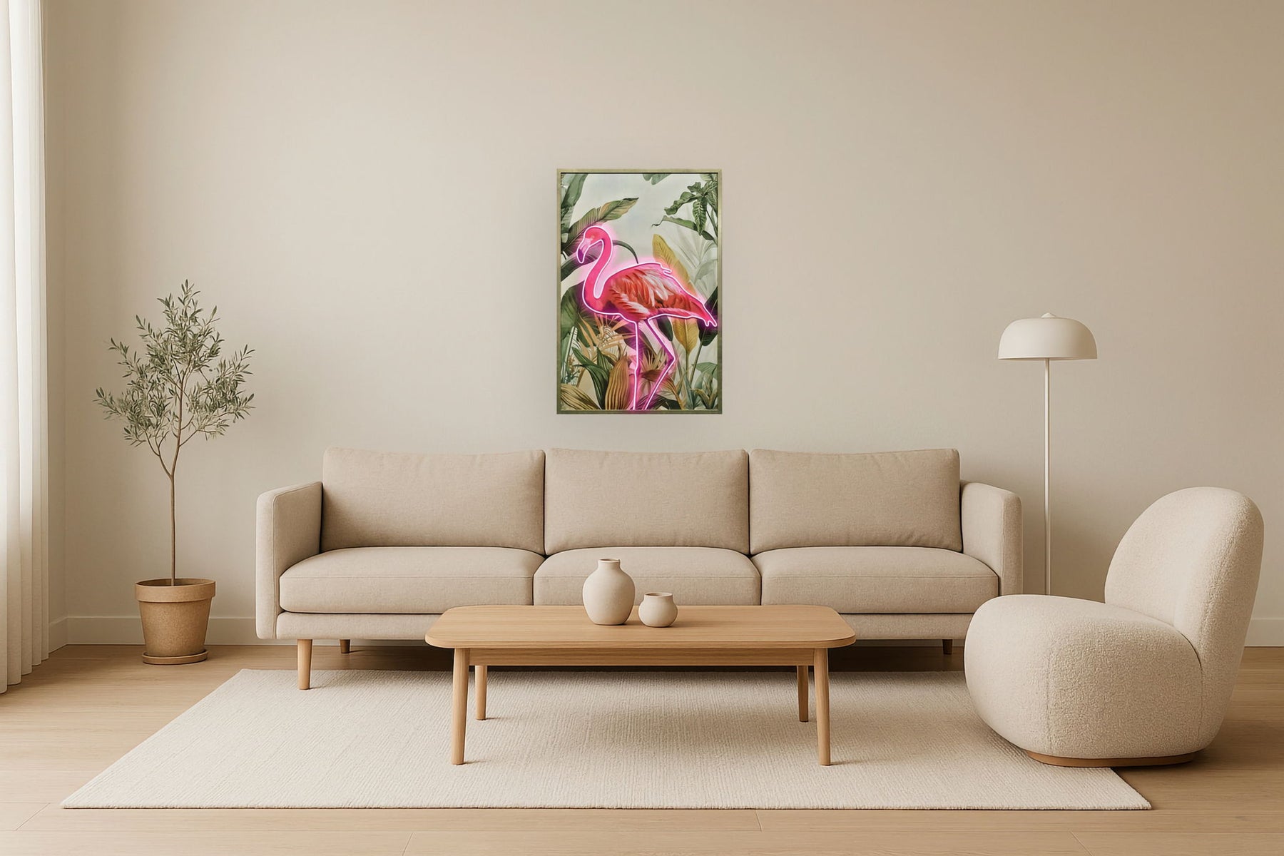 Electric Flamingo Oasis - 33" x 48" Framed Wall Art