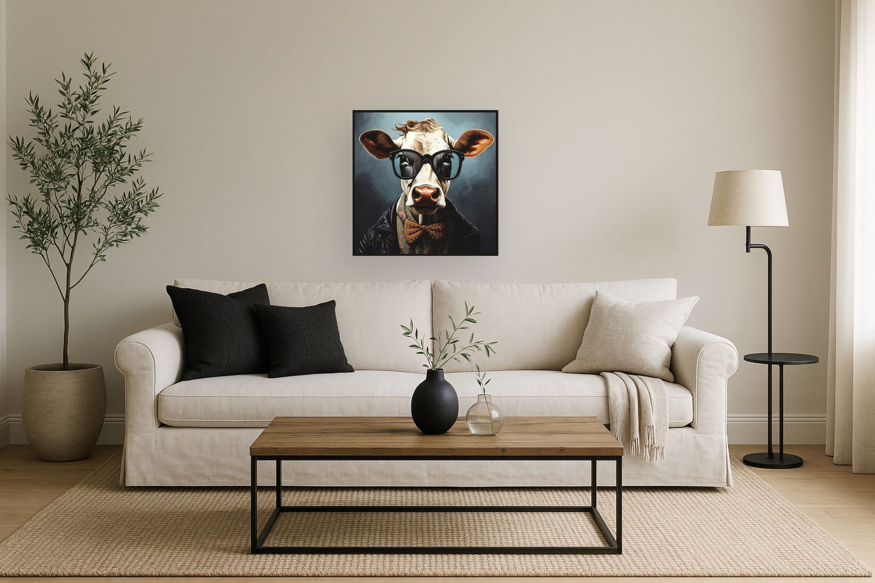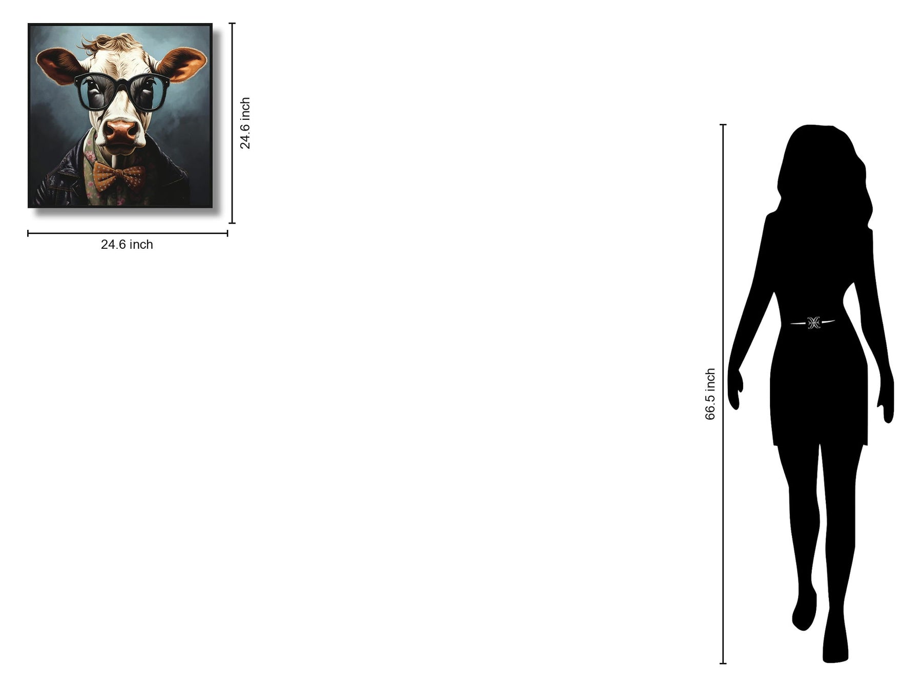 Hipster Bowtie Bovine - 25" x 25" Framed Wall Art
