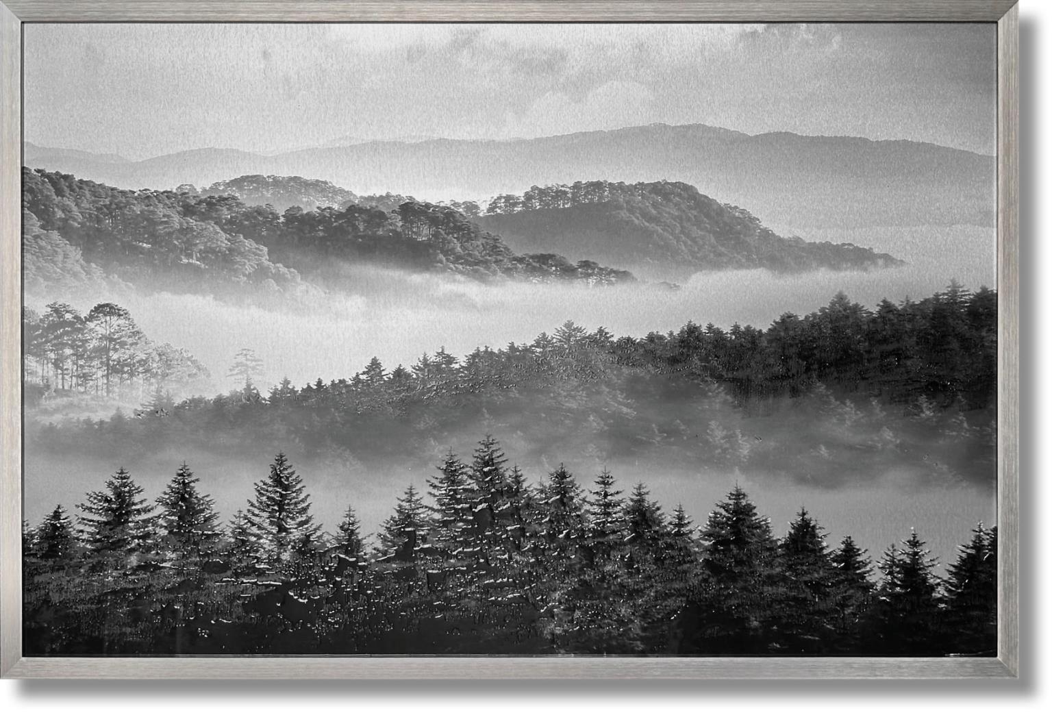 Misty Pine Veil - 32" x 47" Framed Wall Art - Gray