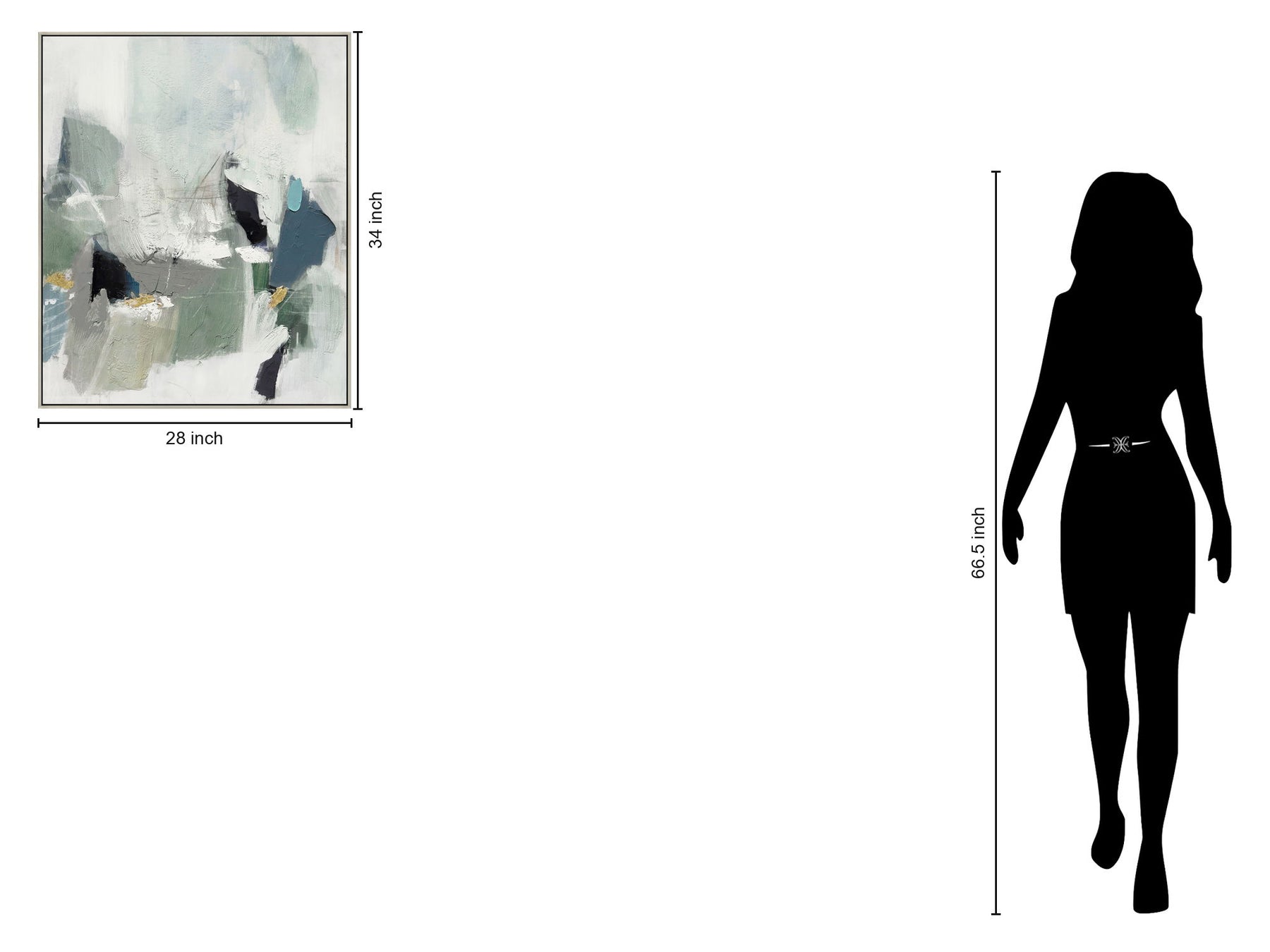 "Oceanic Whispers II" Hand-Embellished Canvas In Frame - Gray / White / Green