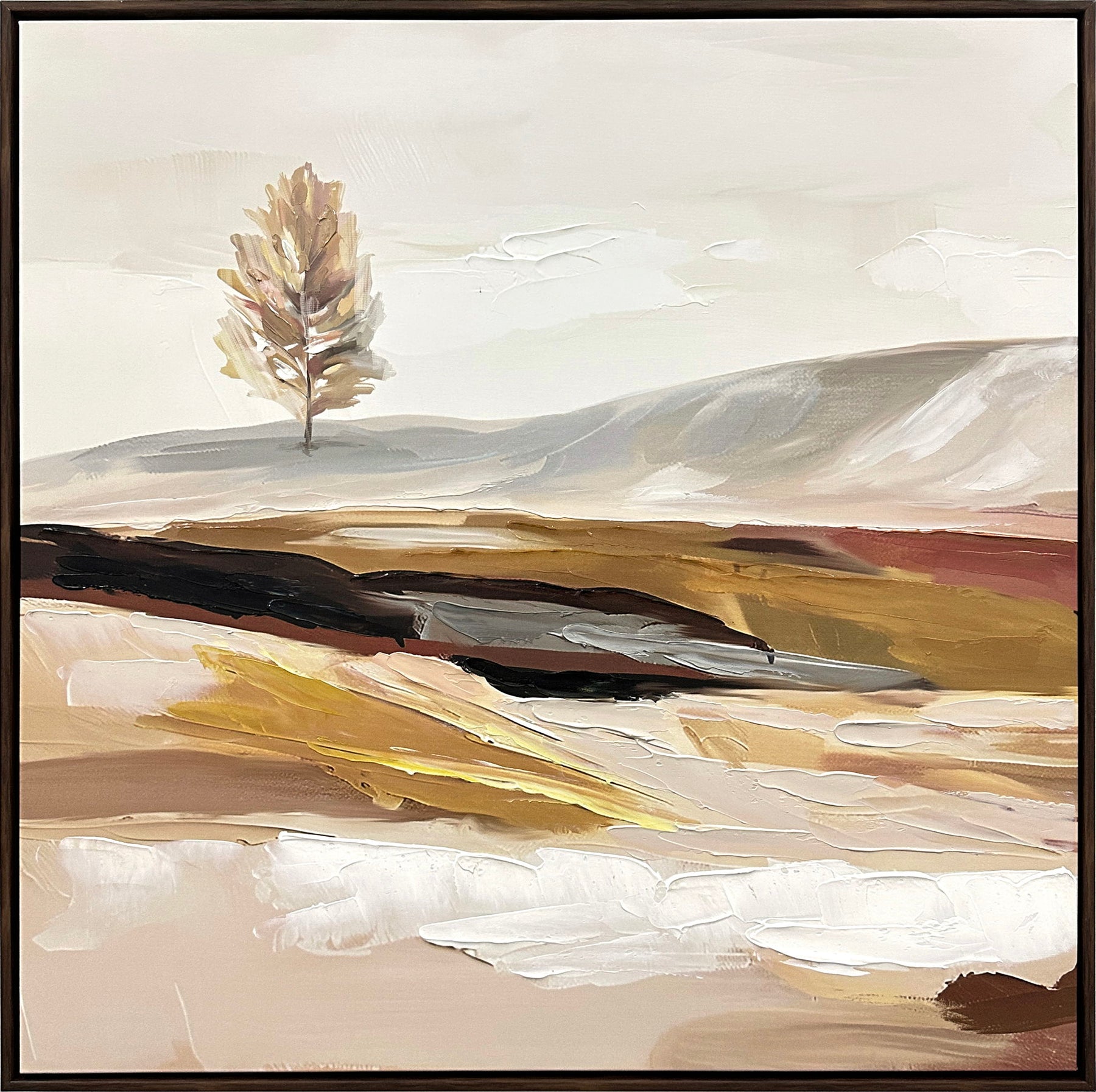 "Solitary Serenity I" Hand-Embellished Canvas In Frame - Neutral / Brown