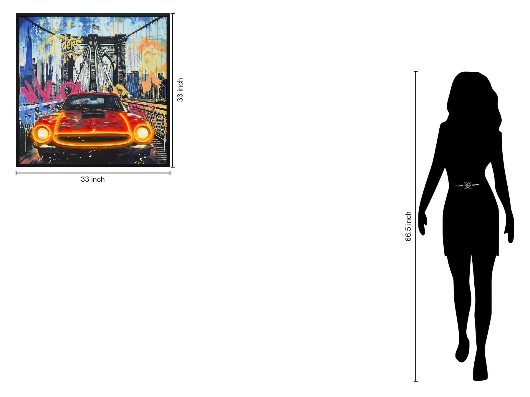 "Urban DrIVe" Hand-Embellished LED In Frame - Black / Neon