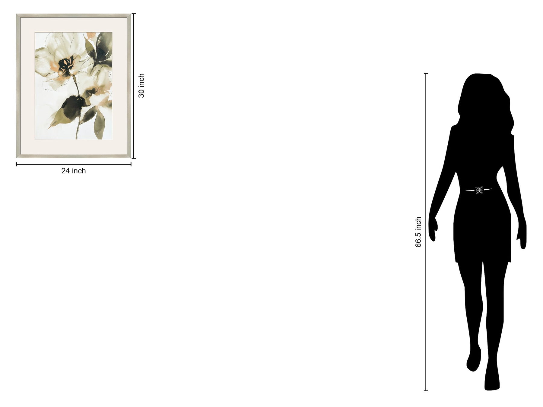 "Whispering Petals I" Framed Canvas Under Acrylic - Beige / Cream / Olive